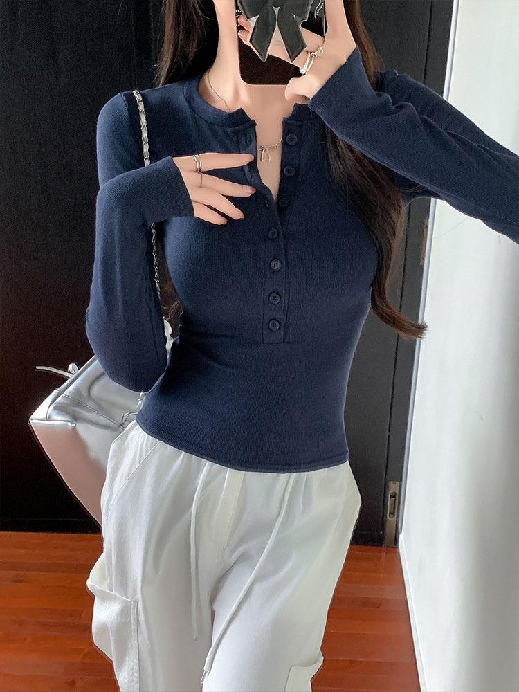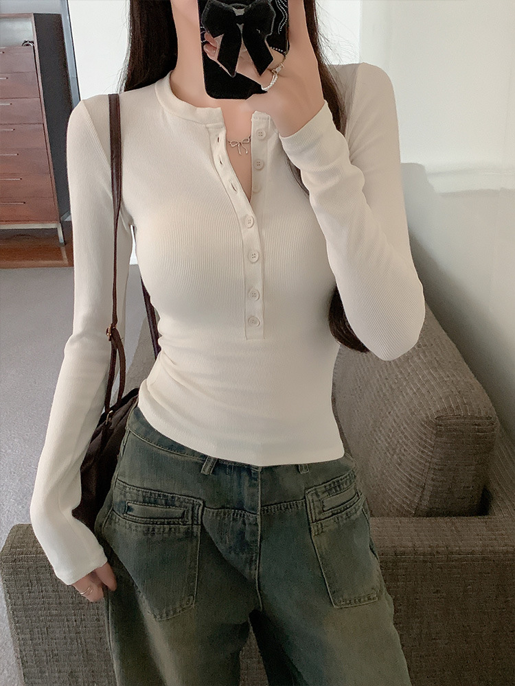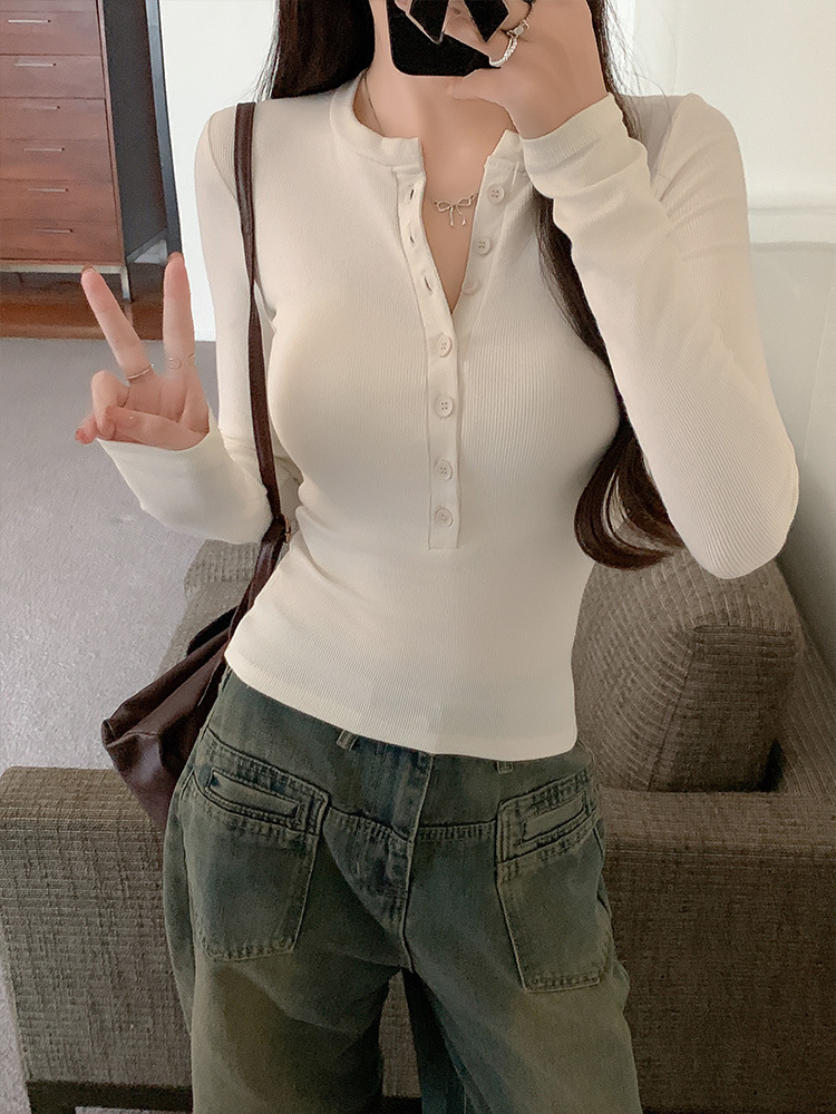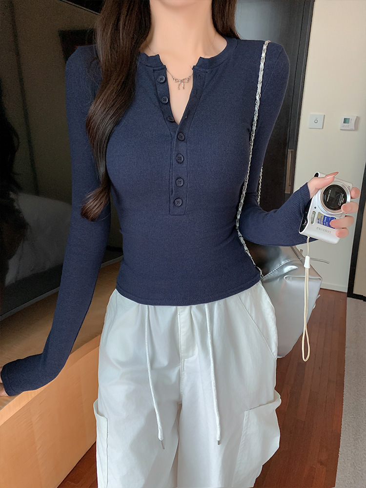 Hot girl tight-fitting long-sleeved T-shirt